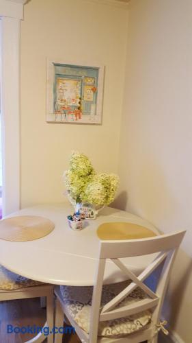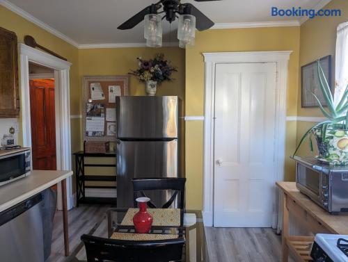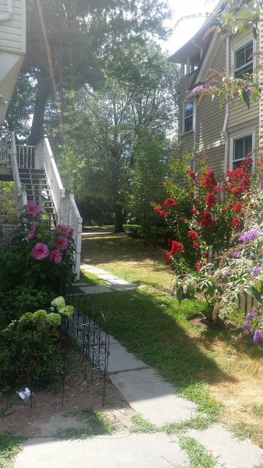 This is a second floor apartment and when renting as one bedroom, you have a a king size bed, living room, dining room, kitchen and bathroom.